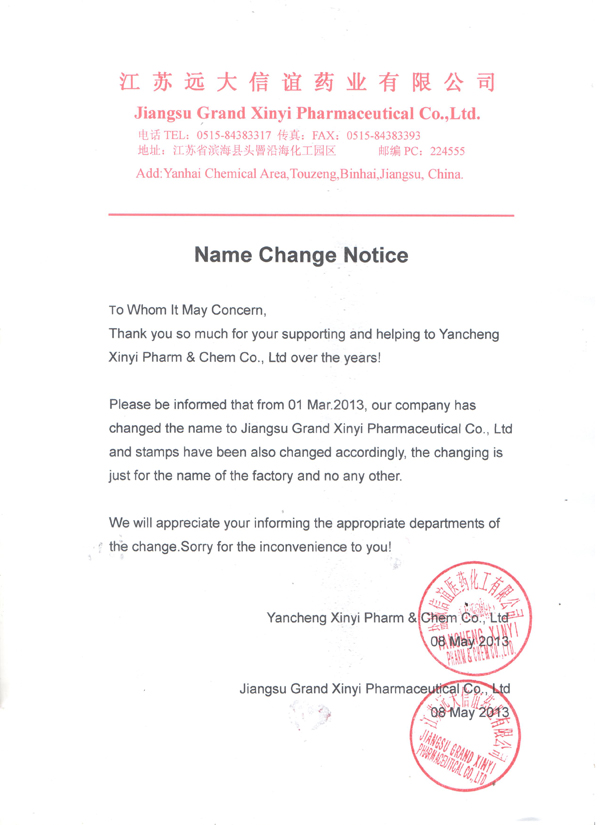 Welcome to Jiangsu Grand Xinyi Pharmaceutical Co.,Ltd. Website!